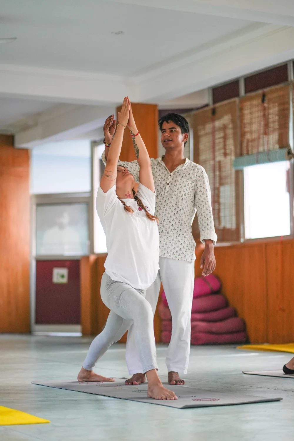 In the First Week, A detailed study and practice on the standing foundational sequence of primary series with proper alignment is done. Once the students get familiar with foundational part of Ashtanga vinyasa teachers gradually leads them to the further sitting series and inversions. So by the end of the course students are able to perform whole series by their own with proper alignment and adjustment of each Asana.